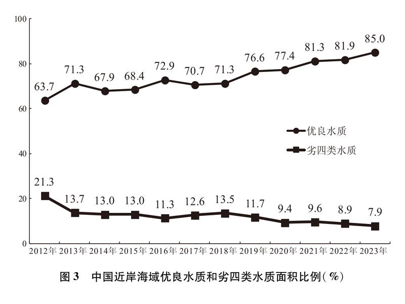 通过深入推进重点海域综合治理、陆海污染协同防治,持续建设美丽海湾,中国近岸海域水质总体改善,2023年优良水质面积比例较2012年高出21.3个百分点。